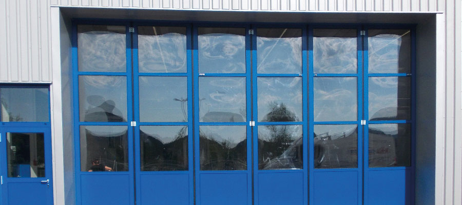 Individuell auf alle betrieblichen Erfordernisse ausgerichtet, kommen Falttore besonders bei großen Wartungshallen, Betriebshöfen, Gerätehallen oder Fahrzeugdepots zum Einsatz.
